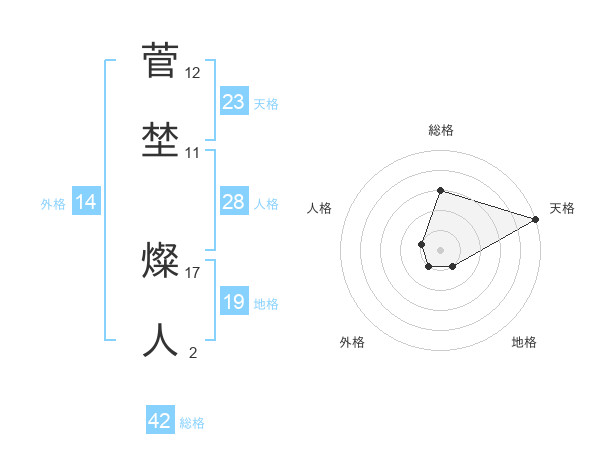 菅埜 燦人さんの天格は23画の5点!