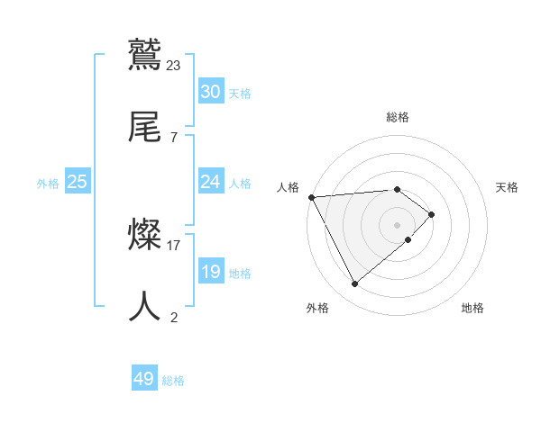 鷲尾 燦人さんの天格は30画の2点!