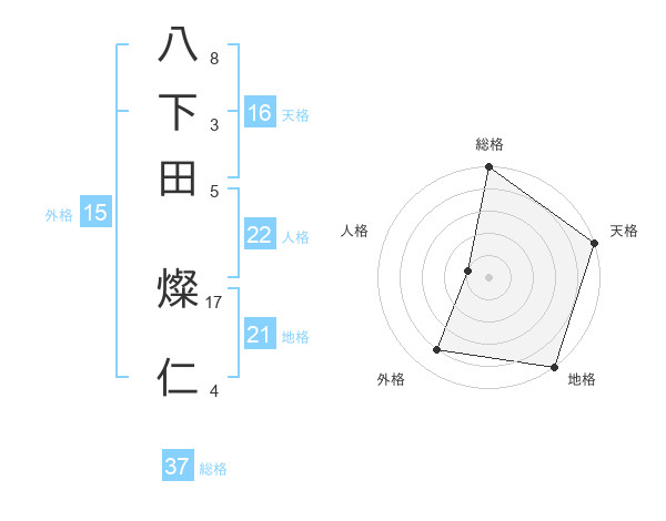 八下田 燦仁さんを姓名の画数から五運を鑑定