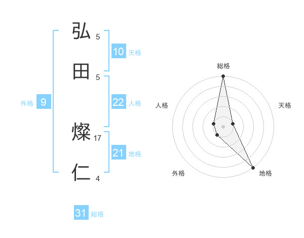 弘田 燦仁さんの総格は31画の5点!