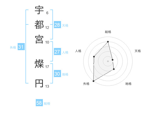 宇都宮 燦円さんを姓名の画数から五運を鑑定