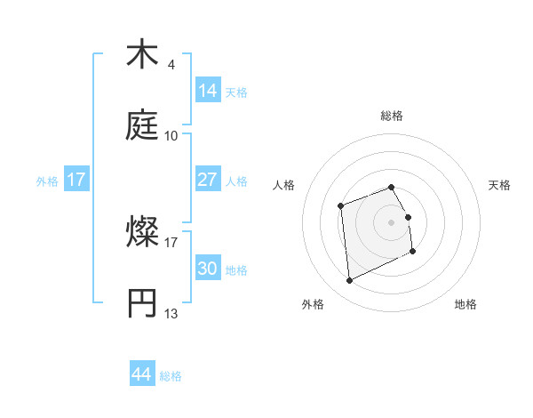 木庭 燦円さんの総格は44画の2点!