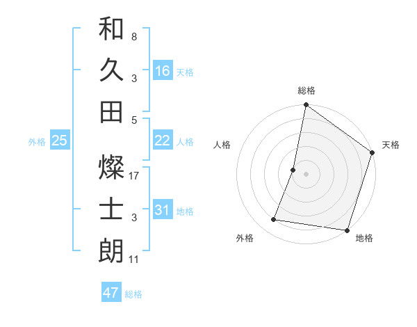 和久田 燦士朗さんを姓名の画数から五運を鑑定