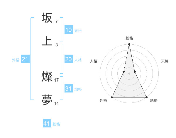 坂上 燦夢さんを姓名の画数から五運を鑑定