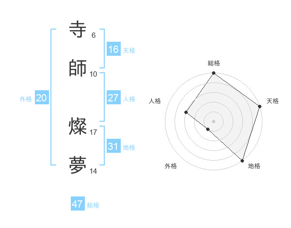 寺師 燦夢さんを姓名の画数から五運を鑑定