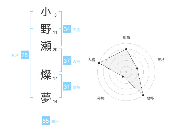 小野瀬 燦夢さんを姓名の画数から五運を鑑定