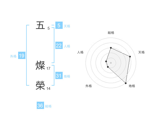 五 燦榮さんの地格は31画の5点!