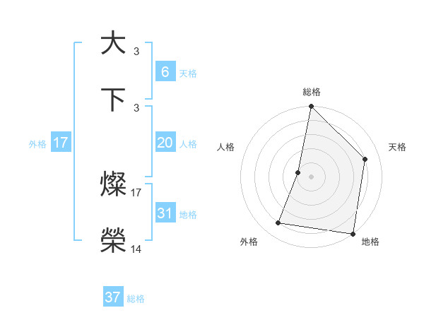 大下 燦榮さんを姓名の画数から五運を鑑定