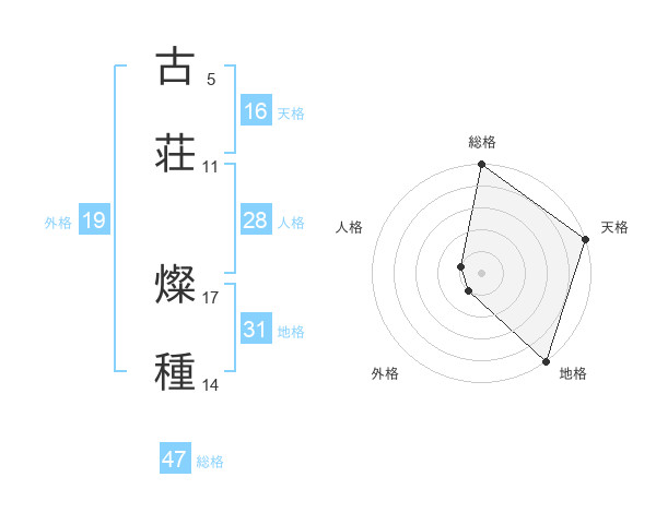古荘 燦種さんを姓名の画数から五運を鑑定