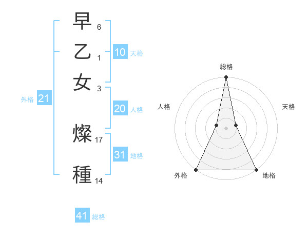 早乙女 燦種さんを姓名の画数から五運を鑑定