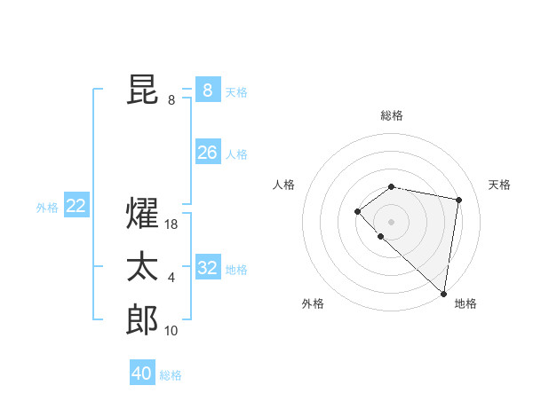 昆 燿太郎さんを姓名の画数から五運を鑑定