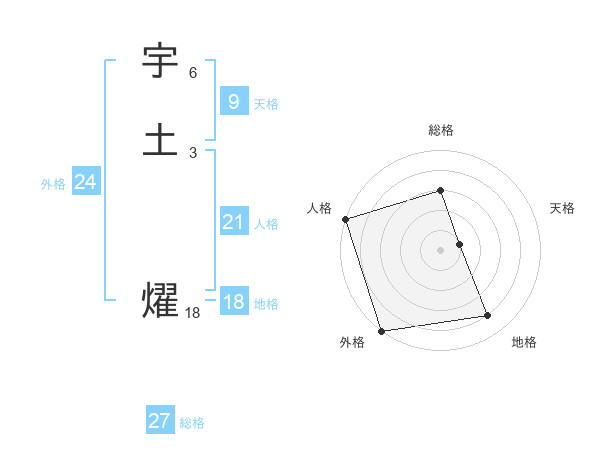 宇土 燿さんの総格は27画の3点!