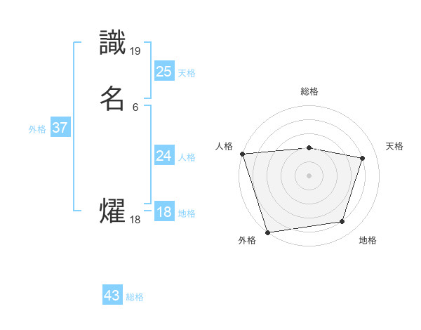 識名 燿さんの外格は37画の5点!