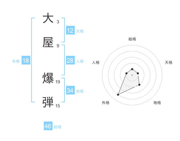 大屋 爆弾さんの総格は46画の1点!