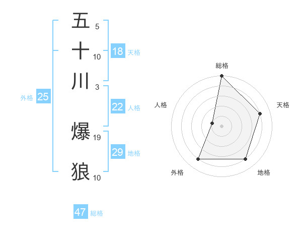 五十川 爆狼さんを姓名の画数から五運を鑑定