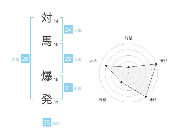 対馬 爆発さんの総格は55画の1点!