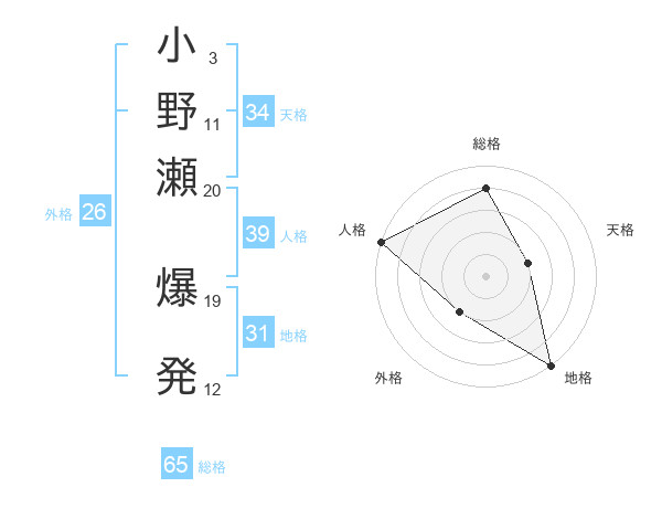 小野瀬 爆発さんを姓名の画数から五運を鑑定