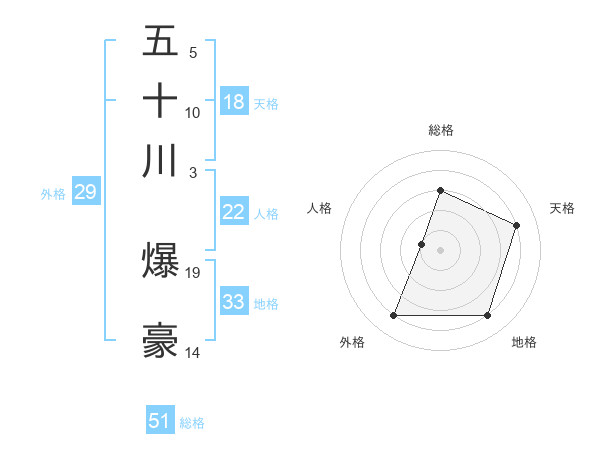 五十川 爆豪さんを姓名の画数から五運を鑑定