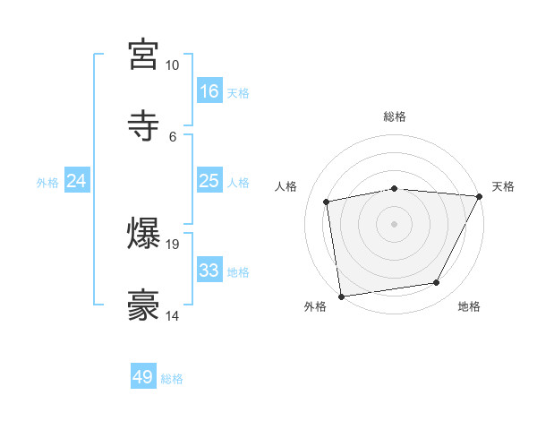宮寺 爆豪さんを姓名の画数から五運を鑑定