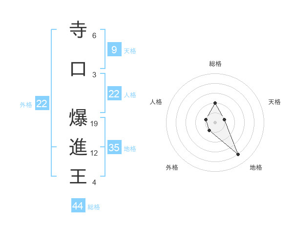 寺口 爆進王さんを姓名の画数から五運を鑑定