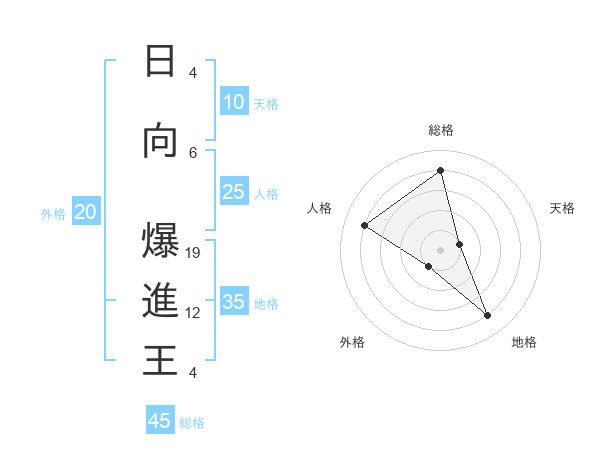 日向 爆進王さんを姓名の画数から五運を鑑定