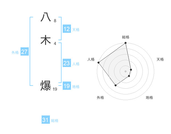 八木 爆さんの総格は31画の5点!