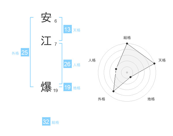安江 爆さんの総格は32画の5点!