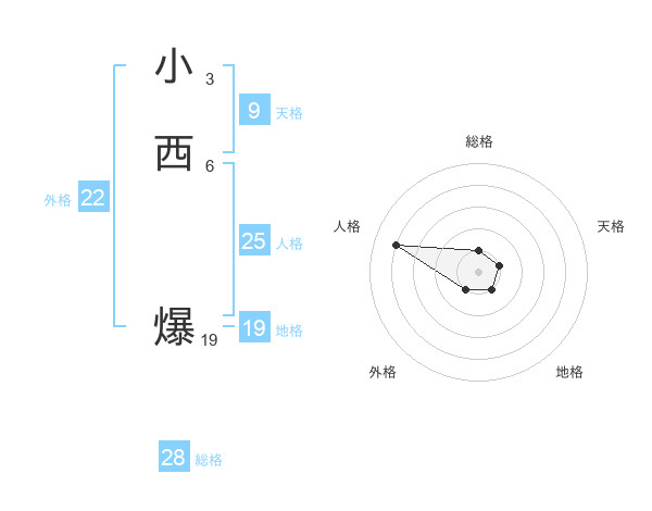 小西 爆さんの外格は22画の1点!