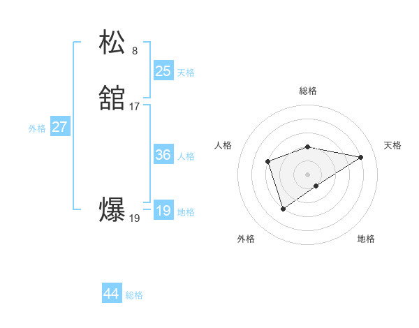 松舘 爆さんの総格は44画の2点!