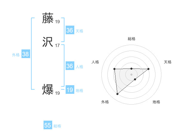 藤沢 爆さんを姓名の画数から五運を鑑定