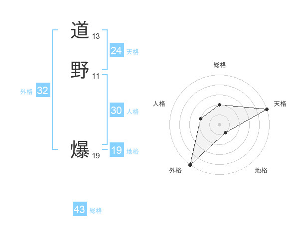 道野 爆さんの天格は24画の5点!