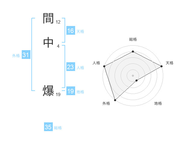 間中 爆さんの総格は35画の4点!