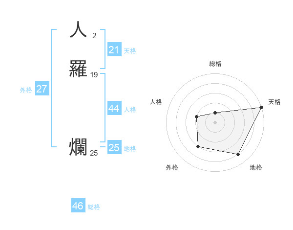 人羅 爛さんの天格は21画の5点!