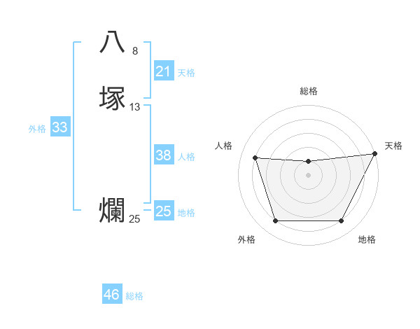 八塚 爛さんの天格は21画の5点!
