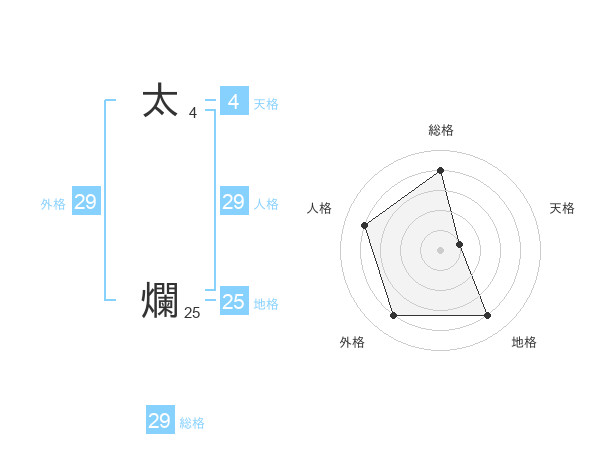 太 爛さんの総格は29画の4点!