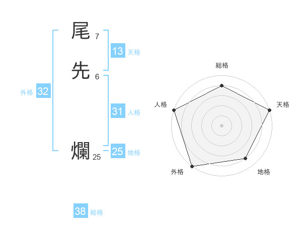 尾先 爛さんの外格は32画の5点!