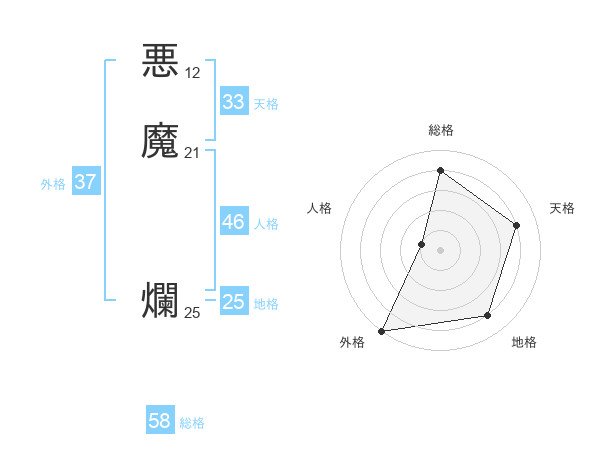 悪魔 爛さんを姓名の画数から五運を鑑定
