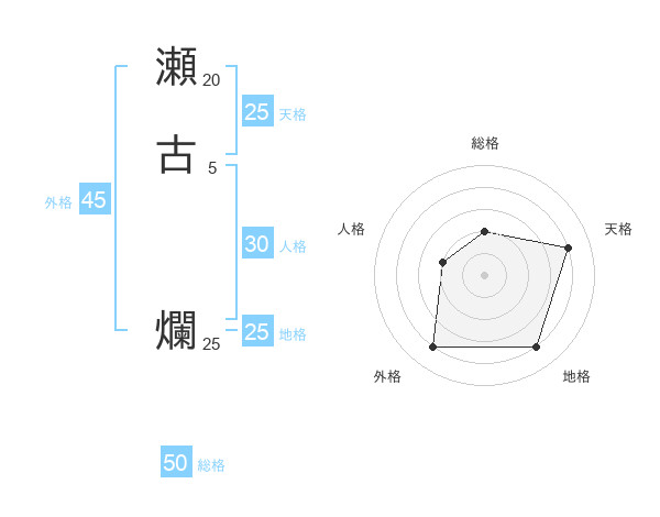 瀬古 爛さんを姓名の画数から五運を鑑定