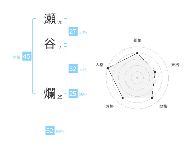 瀬谷 爛さんを姓名の画数から五運を鑑定