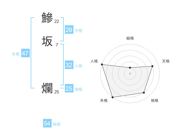 鰺坂 爛さんを姓名の画数から五運を鑑定