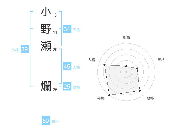 小野瀬 爛さんを姓名の画数から五運を鑑定