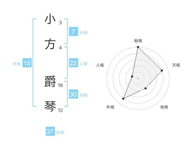 小方 爵琴さんの総格は37画の5点!