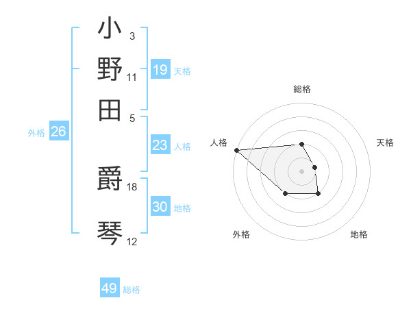 小野田 爵琴さんを姓名の画数から五運を鑑定