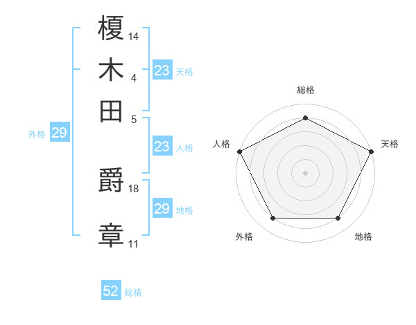 榎木田 爵章さんを姓名の画数から五運を鑑定