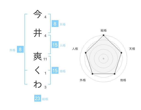 今井 爽くわさんの外格は8画の4点!