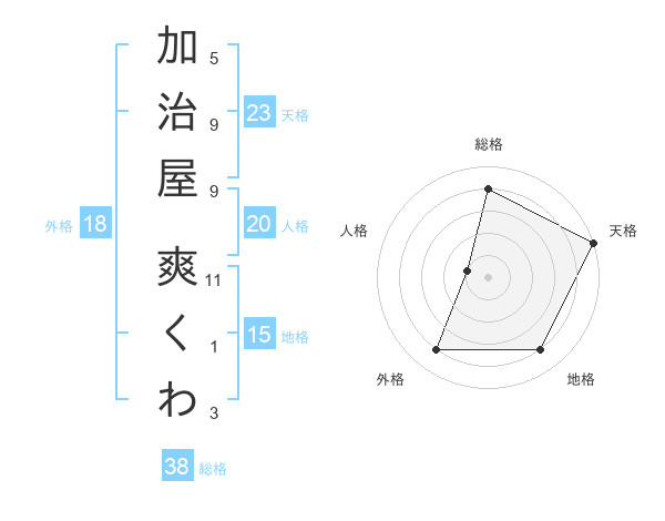 加治屋 爽くわさんを姓名の画数から五運を鑑定