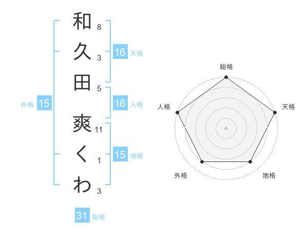 和久田 爽くわさんを姓名の画数から五運を鑑定