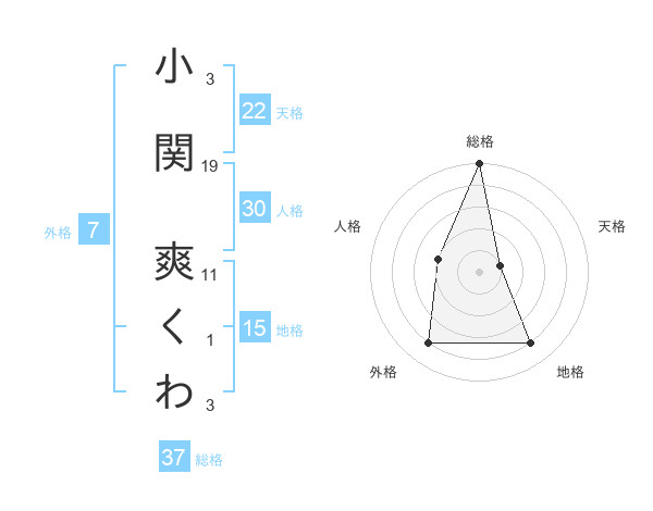 小関 爽くわさんを姓名の画数から五運を鑑定