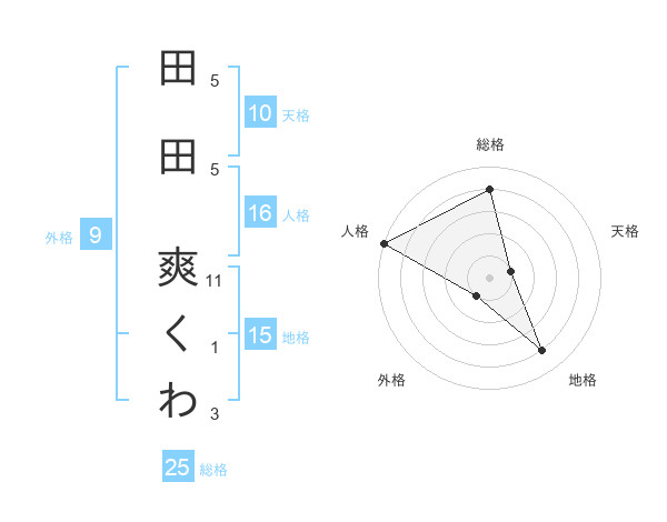 田田 爽くわさんを姓名の画数から五運を鑑定