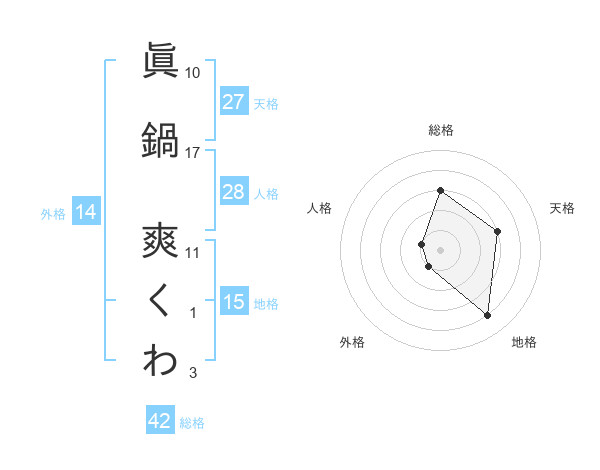 眞鍋 爽くわさんを姓名の画数から五運を鑑定